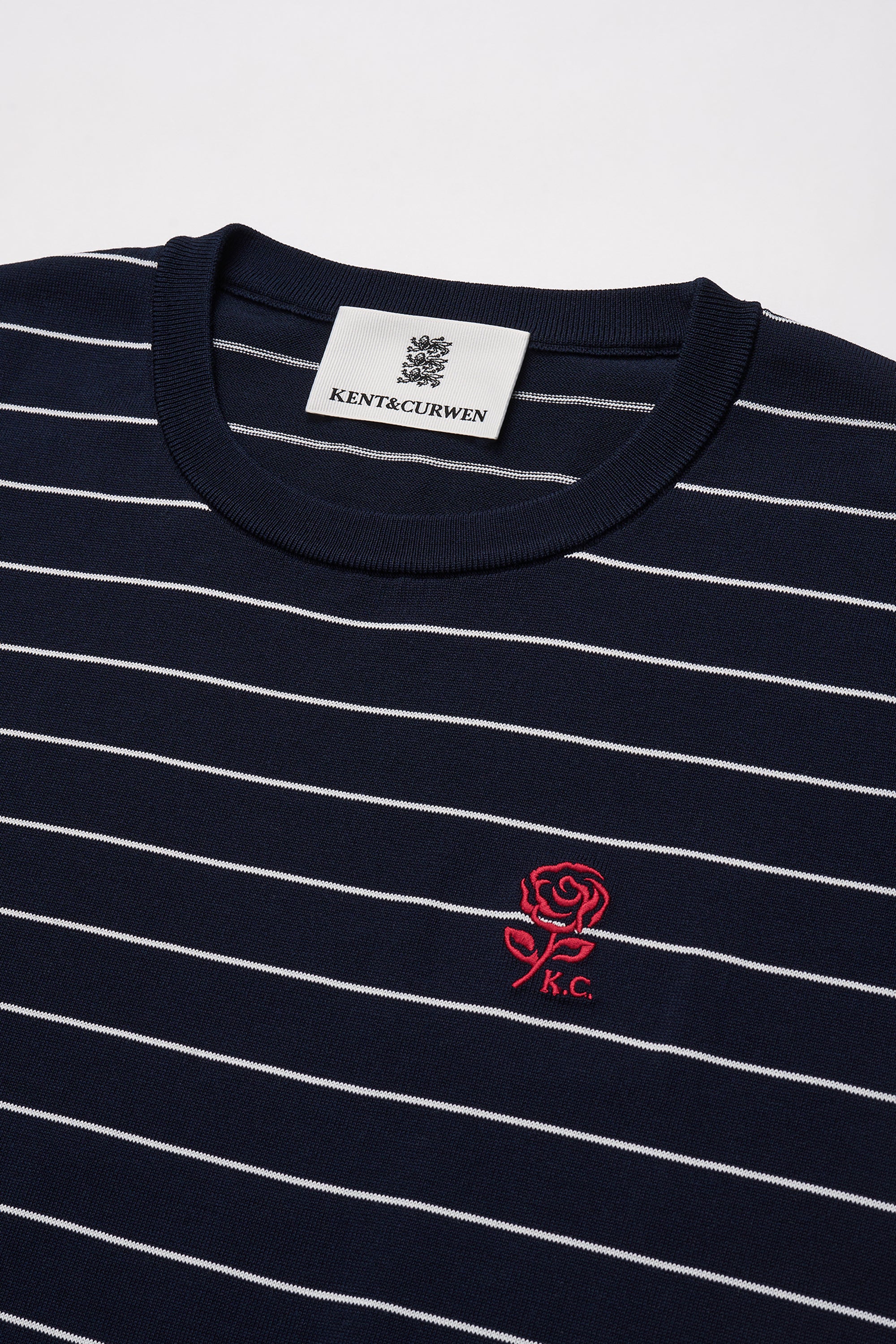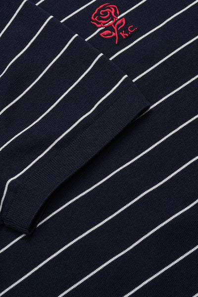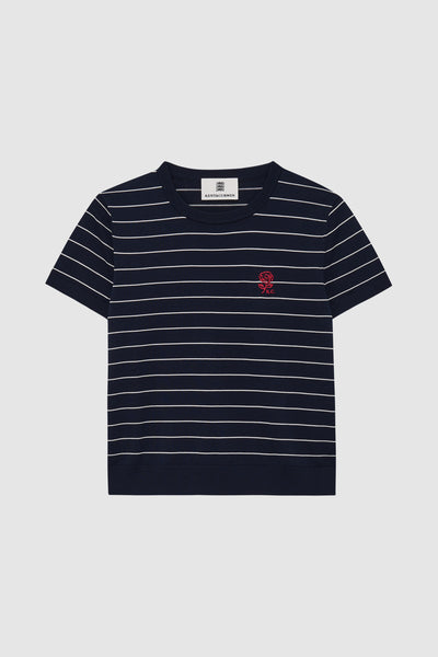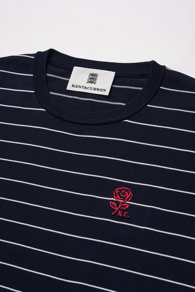 Embroidered Rose Striped Navy T-Shirt