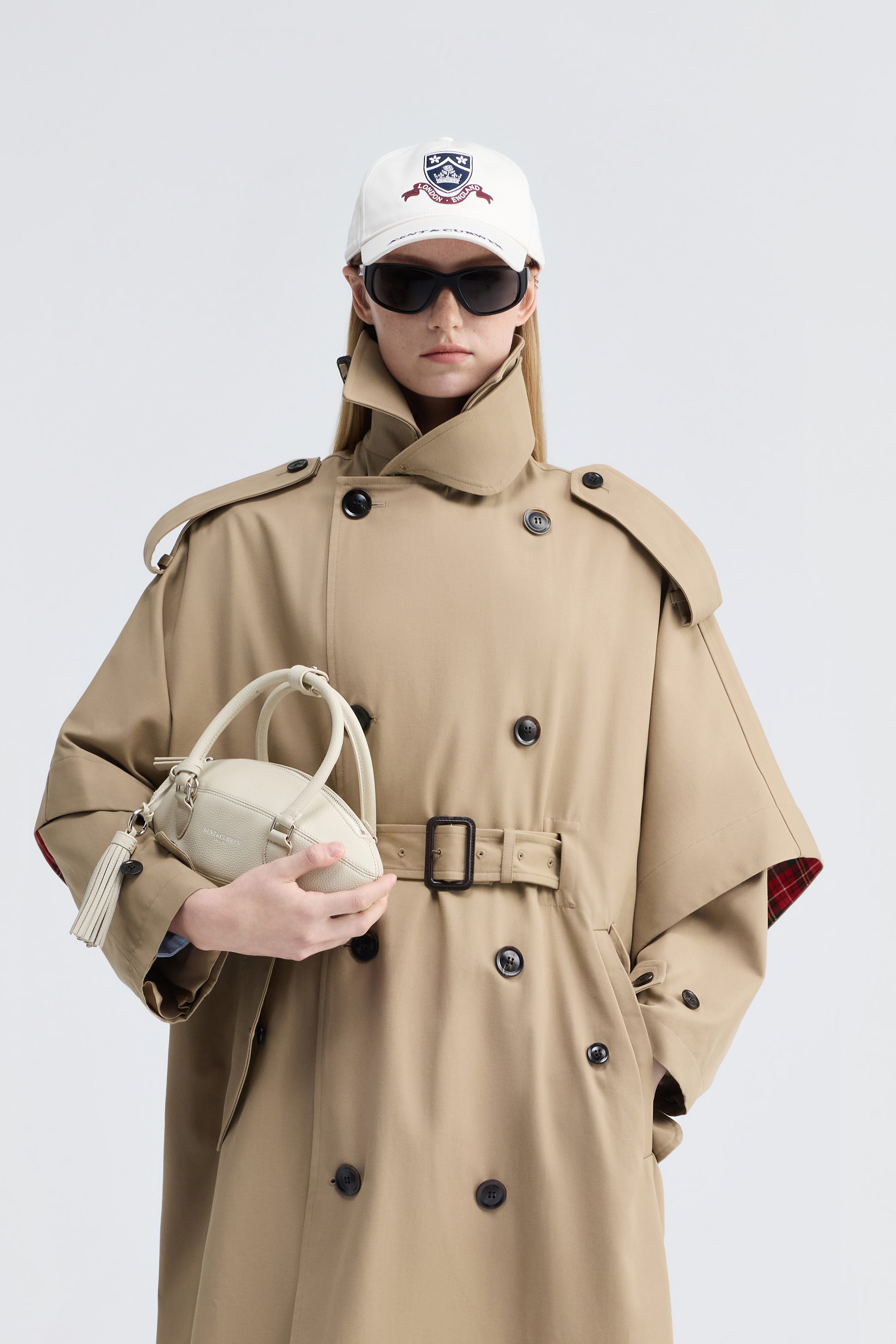 - Double-breasted trench coat